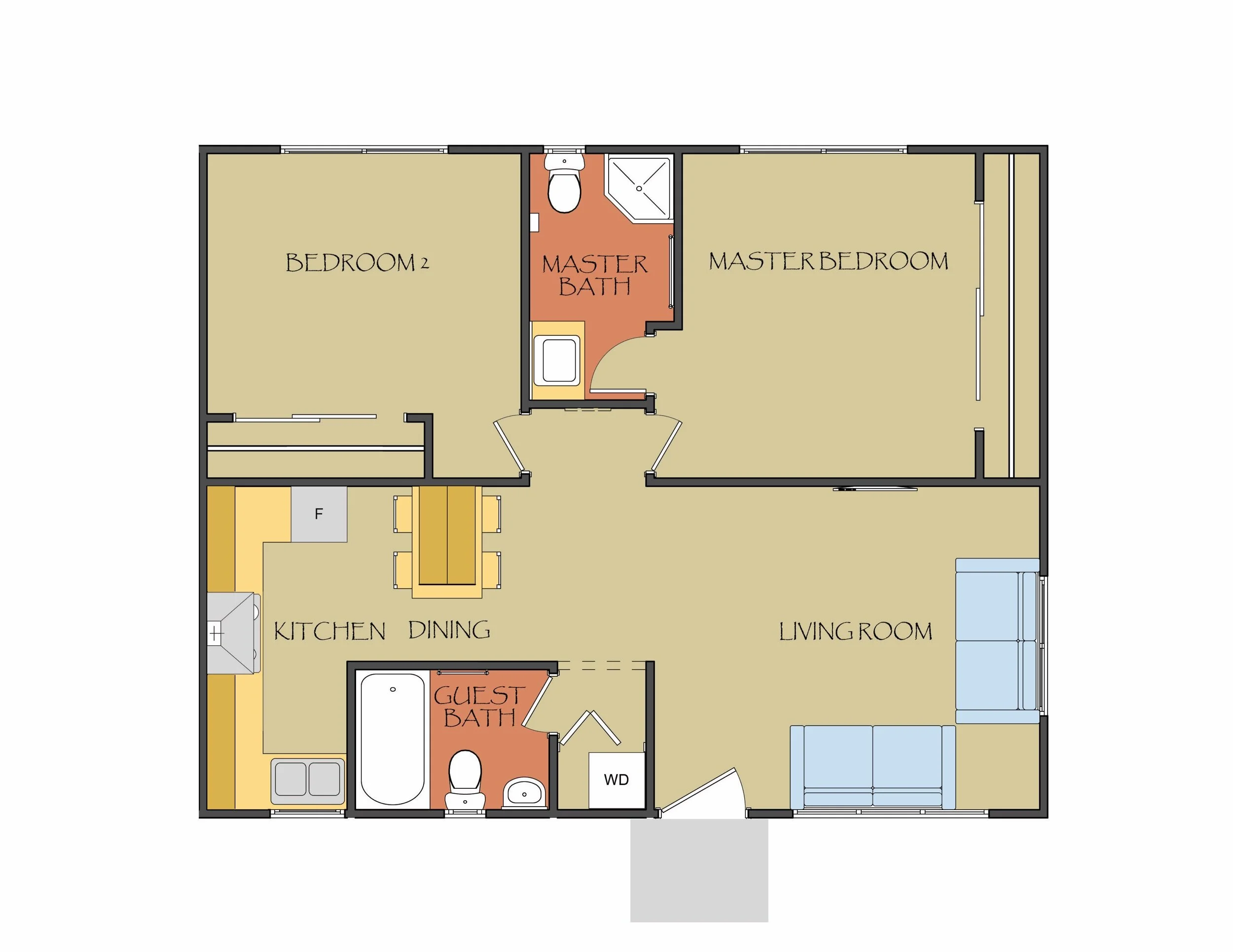 Full design and documentation of an affordable duplex rental product for a real estate investor group situated off the main entrance of Joshua Tree NP. Done in the southwestern style with rounded stucco corners and stepping parapets.